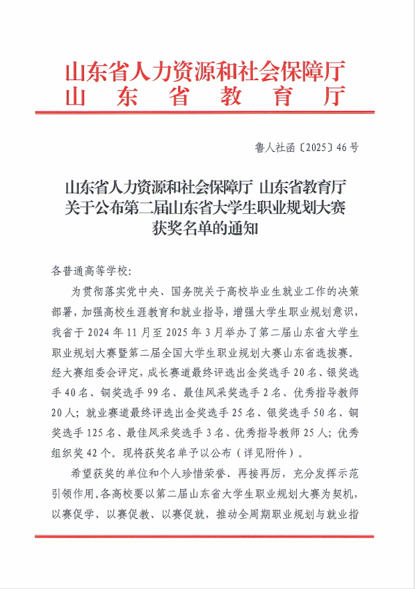作为学院就业育人工作的重要成果,本次获奖是我院"以赛促学、以赛促教、以赛促就"育人理念的生动实践。今后我院将以此为契机,持续完善全周期职业规划指导体系,通过强化职业素养培育、实战化竞赛训练、精准化就业服务,帮助学生提升职业规划能力和就业竞争力,全力推动毕业生实现高质量充分就业。