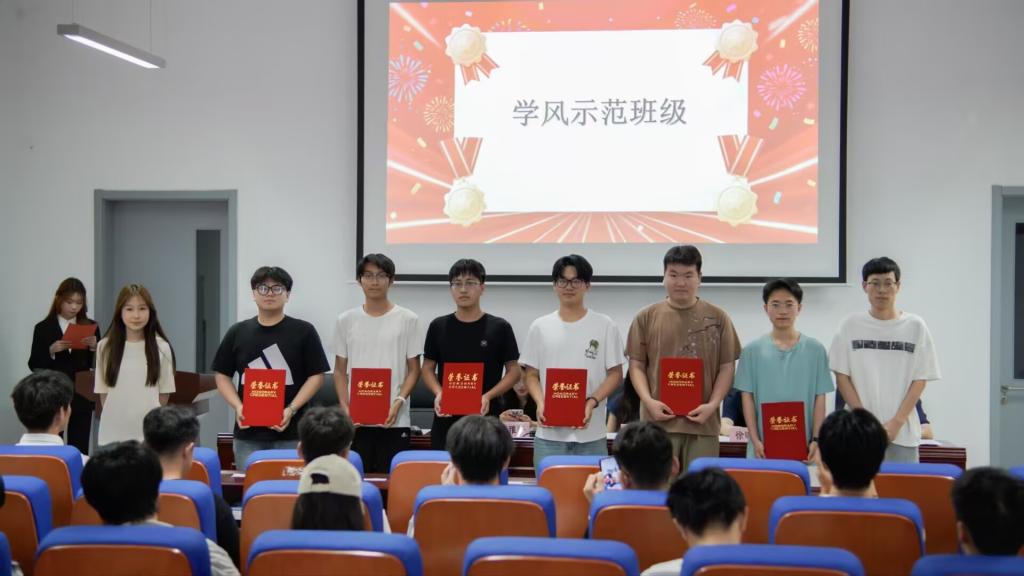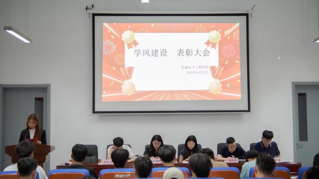 为促进我院学风建设工作的深入展开,推动形成积极向上的学术氛围,激发学生的内在学习热情,鼓励他们制定更高目标,提升学术能力和综合素质。机械电子工程学院于2025年6月12日在理工东A101会议室举行“标杆领航,学思共进”学风建设表彰大会。该活动由我院学生会学习部承办。辅导员张倩茹、徐昕宇、胡晓龙、曾雅轩、安民康出席此次表彰大会。