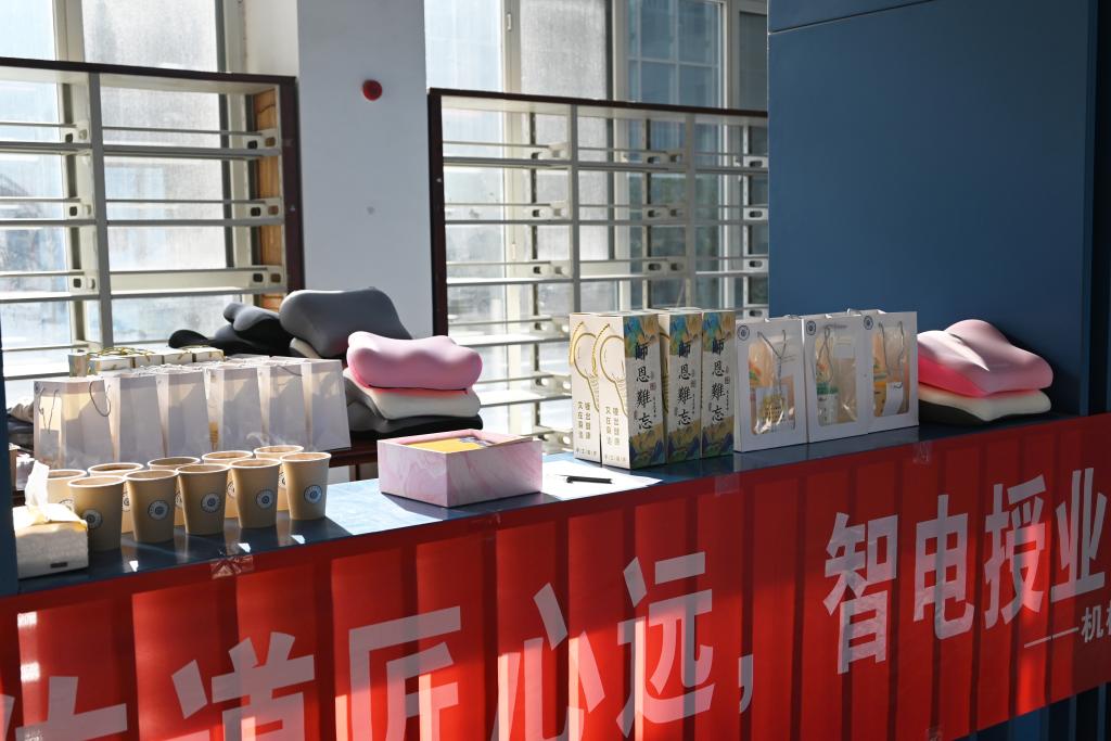 活动现场,艾草锤、精致笔筒、柔软靠垫等礼品有序陈列,供教师自主挑选。当老师们选到心仪的礼品时,眼中满是惊喜与暖意。志愿者们热情地为教师递上节日贺卡,并送上“老师您辛苦了,节日快乐”的诚挚问候,引得大家纷纷展露笑颜。饮品区咖啡香气四溢,老师们端杯轻啜,疲惫面容渐显放松。这些礼品与饮品,成为了学生向教师传递认可与感恩的温情纽带。