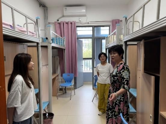 走访过程中,学院领导与老师们亲切问候刚刚报到的同学,了解每位新生的需求、入学适应情况,耐心询问同学们在生活起居、饮食习惯和课程预习等方面的具体情况,并认真倾听同学们的困惑,了解他们的需求,及时予以解答和帮助。领导与辅导员们对宿舍的用电安全、消防安全、卫生环境等进行了全面排查,并向同学们详细讲解了宿舍安全管理的各项规定与自我防护知识,向新生们普及寝室安全常识和校纪校规,提醒大家增强自我保护意识,杜绝安全隐患,共同维护整洁、安全、和谐的生活环境。