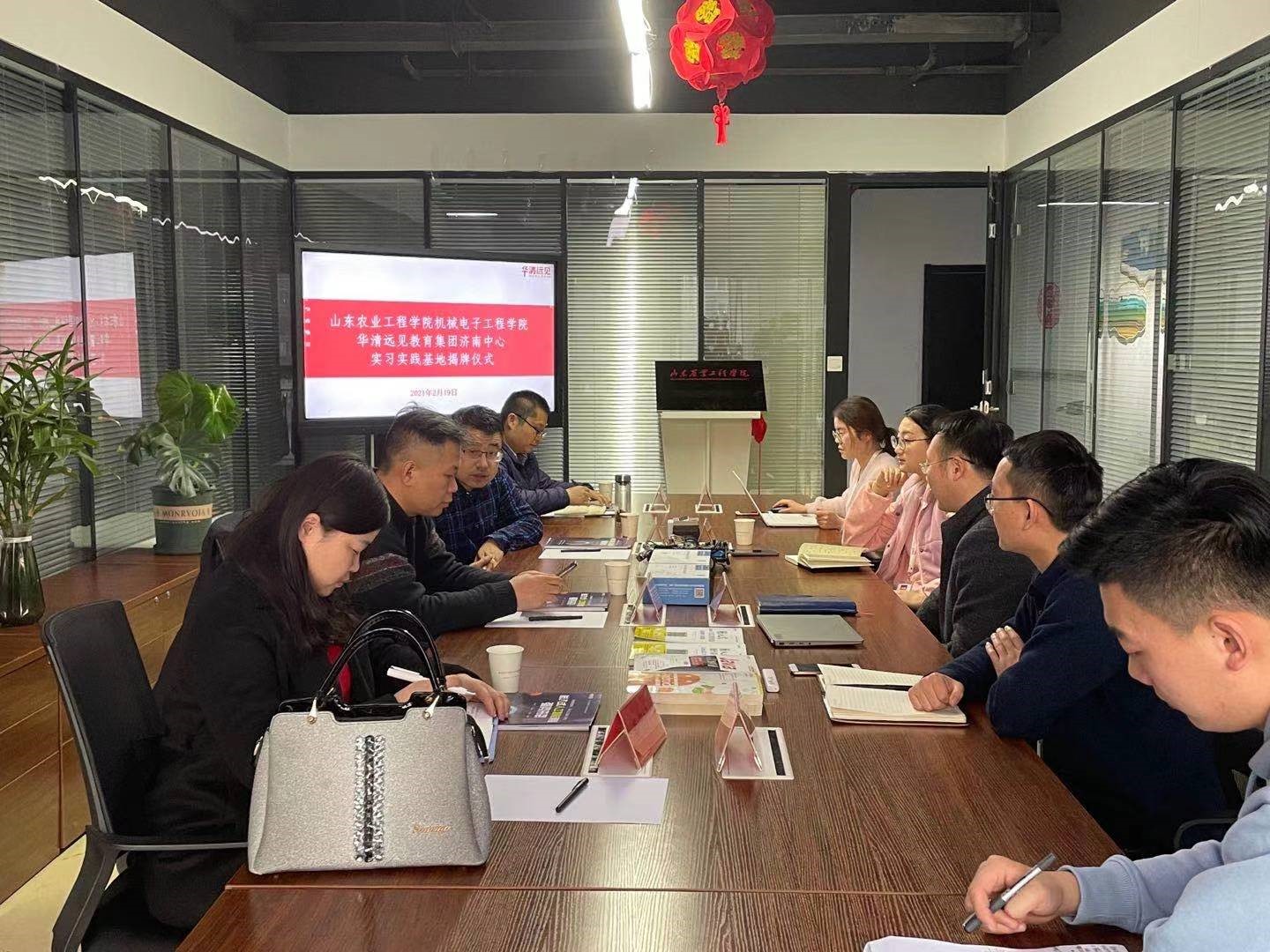 2月19日下午,机械电子工程学院实习实践基地揭牌仪式在华清远见教育集团济南中心顺利举行。机械电子工程学院院长宋卫海、副院长赵志桓、电气工程教研室主任潘莹月、副主任姜明明一行参加了揭牌仪式。