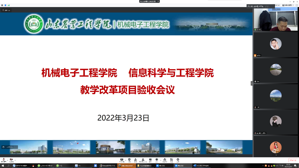 3月23日晚,机械电子工程学院联合信息科学与工程学院线上召开了校级教学改革项目验收会议。会议邀请机械电子工程学院宋卫海教授、田淑众教授、林小亮副教授,信息科学与工程学院杨现德教授、宋霞教授组成评审组。教务处委派张光腾副教授参加了本次会议。