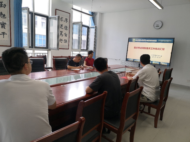马勇书记指出试卷评阅是考试的重要环节之一,试卷成绩是检验学生本学期学习效果的重要指标,因此一定要从思想上重视试卷评阅工作,做到批阅格式符合规范、评分有理有据、复核成绩尽职尽责,确保高质量完成本学期期末试卷的评阅工作。