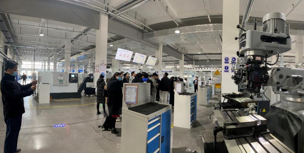 在莱茵科斯特专业培训师的介绍下,同学们到工业4.0智能制造示范中心、AHK考试认证技术中心、工业机器人集成应用技术中心、手动加工技术中心等进行实地观摩。莱茵科斯特国际化技术实训中心依托德国标准进行建设,具备智能制造人才、技术交流、合作平台等优势。通过参观让同学们在体验式、沉浸式的学习交流中了解智能制造、工业互联网行业的前沿技术,同时提升了对电气工程及其自动化专业的认知水平。