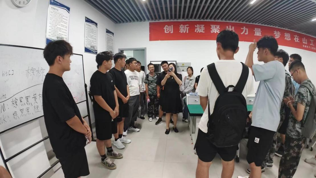 会议结束后,班主任带领新生参观了机电学院实验室,并详细为新生介绍了上课环境以及实践教学场所与设备。工程创新社团为新生分享了学生创新创业成果以及各项大赛取得成绩。