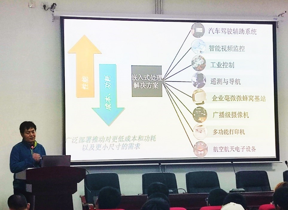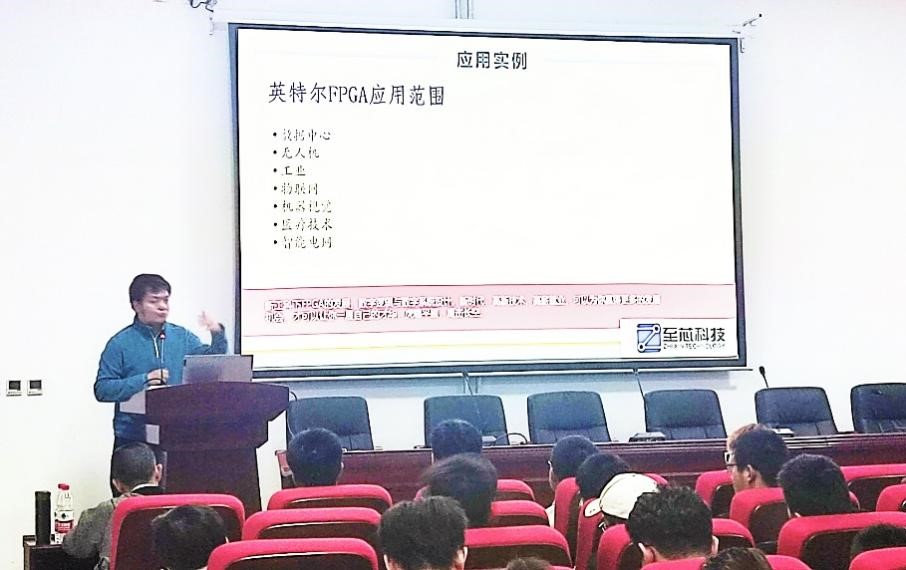 雷斌老师围绕“FPGA技术在新工科背景下的应用现状及发展前景”为主题,向在座师生介绍了FPGA技术的发展、应用及前景,从机器视觉、片上系统SOC、智能驾驶、大数据和加速计算等多角度,举例其在工业和自动化领域、智慧农业领域等的应用,并提出了FPGA技术对于解决国家战略部署的重要作用,对于解决卡脖子问题,如我国“芯片荒”、自主知识产权和新旧动能转换等关键技术,FPGA发挥着极其重要的作用。