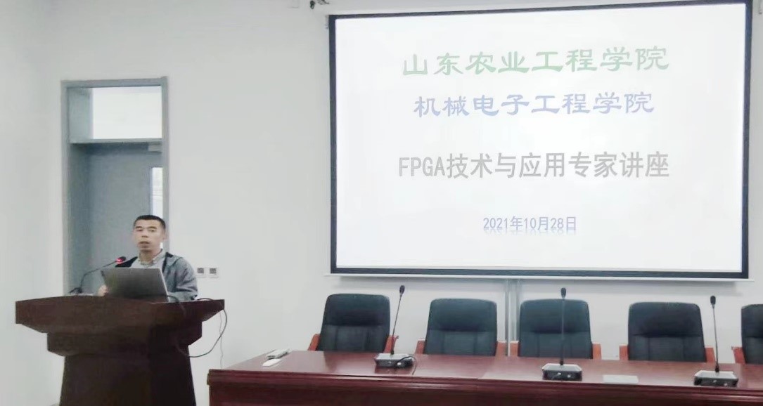 2021年10月28日下午,机械电子工程学院邀请国内从事FPGA技术领域企业北京至芯开源科技有限公司CEO雷斌总经理在淄博校区学术报告厅,进行题为《新工科下,FPGA的应用及发展前景》的学术报告。学院党总支书记马勇主持报告会,我院电气工程及其自动化专业、机械电子工程专业的100余名师生聆听了讲座。