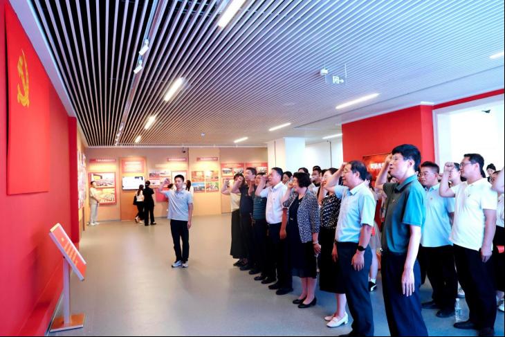 参观结束后,全体党员面向鲜红的党旗,庄严举起右拳,重温入党誓词,铿锵有力的誓言表达了对党的无限忠诚和为共产主义奋斗终身的坚定决心。