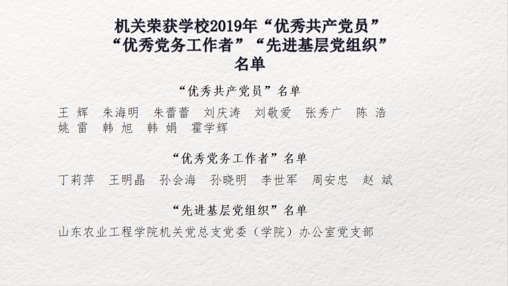 机关荣获学校2019年“优秀共产党员” “优秀党务工作者”“先进基层党组织” 名单