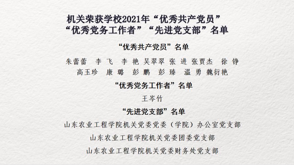 机关荣获学校2021年“优秀共产党员”“优秀党务工作者”“先进党支部”名单