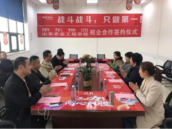 11月15日上午,经济管理学院与京东物流实践教学基地签约暨揭牌仪式在京东会议室顺利举行。经管学院党总支书记颜素杰、院长李百秀、物流教研室副主任郑爱敏、团总支书记谷晓川、教学秘书李飞、学生科科长周海霞,京东物流集团山东省区分公司高级经理于飞、济南园区负责人李斌、济南园区人力资源负责人王保朋、济南园区招聘负责人邢崇智、校企合作负责人张钊参加了本次活动。