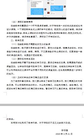通过相互间的学习与借鉴,同时结合所授课程教学的内容、特点及自身对教学信息化技术的熟练掌握程度,老师们形成了用教学平台来建课、进行教学管理;腾讯会议、腾讯课堂等直播互动平台来直播授课;QQ群、微信群进行教学通知、讨论、互动等一系列完整的在线教学模式,保证了知识传授与师生互动的完美结合,受到学生们的一致肯定,取得了满意的授课效果。