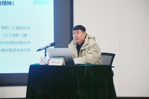 2025年12月5日,经济管理学院开展“阔步迈向农业强国”形势与政策课程,特邀学校党委委员、宣传部部长、机关党委副书记牛化振担任主讲人。院党委书记马勇旁听了本次课程。