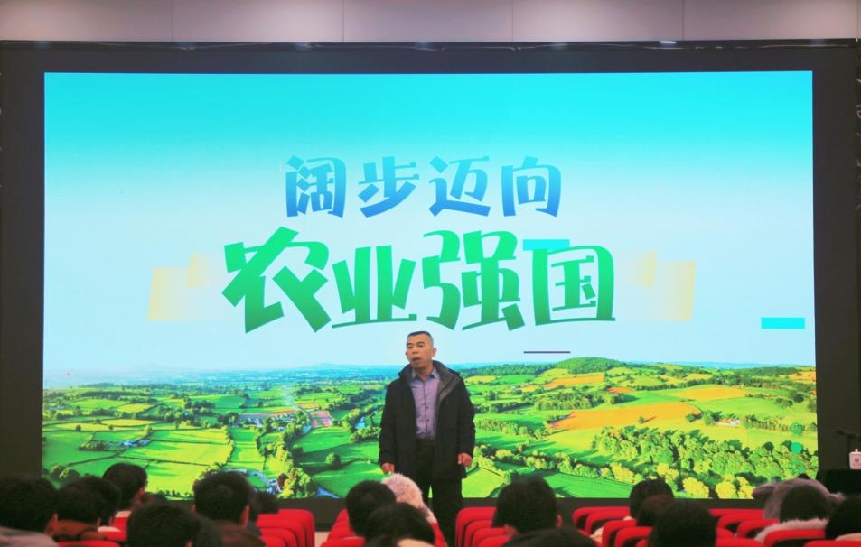 课程以“强国必先强农,农强方能国强”为核心论点开篇,牛化振部长围绕农业强国建设主题,系统解读党的二十届四中全会精神及《加快建设农业强国规划(2024-2035年)》核心要义,阐释了农业强国建设的时代必然性以及我国农业发展的一些现实挑战,鼓励我院学生积极投身基层,将专业所学转化为服务乡村振兴的助农实效。