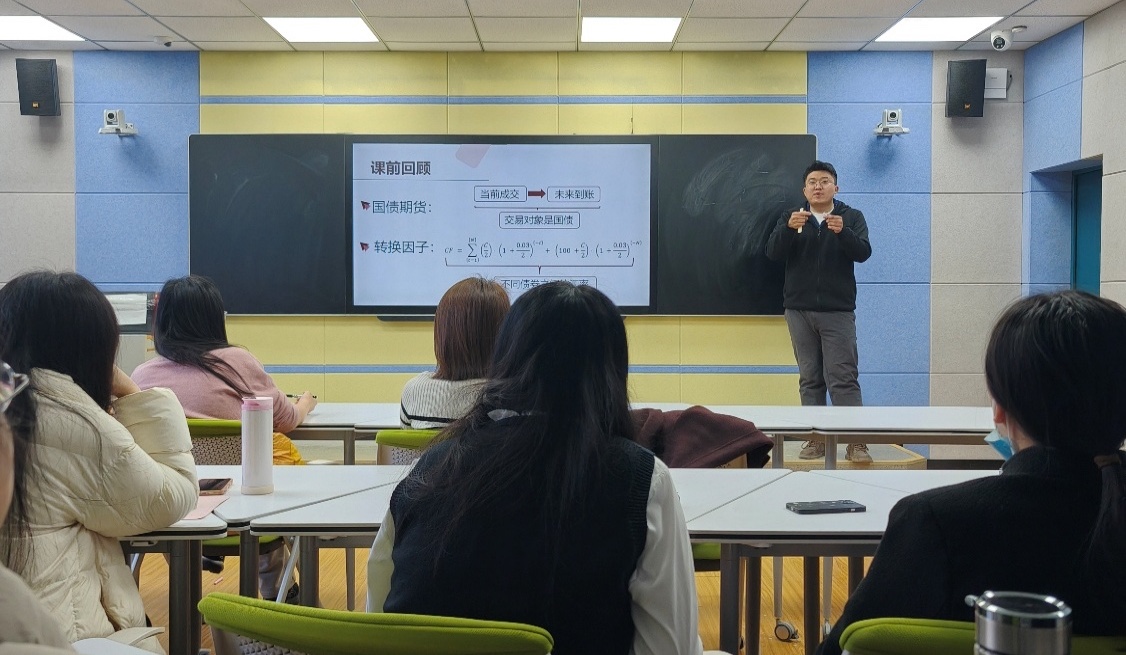 在教学展示环节,两位老师分别选取了其参赛课程中的一个教学节段进行现场演示,充分展现了不同学科背景下的教学智慧与课堂魅力。贾辉老师以《物流设施与设备》课程中的“集装箱”为题,以“集装箱如何重塑现代物流”为引,生动讲述了集装箱从萌芽、诞生到实现标准化、全球化的历史脉络。她通过精心设计的时间轴图示,将技术演进史与全球化进程巧妙勾连,深刻揭示了标准化对于提升物流效率、降低贸易成本的巨大意义。毕舒博老师则围绕《固定收益证券》中的“国债期货交易策略”,从学生熟悉的生活场景切入,巧妙借用“双十一”预购定金与尾款的关系以及提前购买电影票的例子,将“国债现货与期货价格关系”、“基差交易”等专业理论,转化为清晰易懂的逻辑链条。