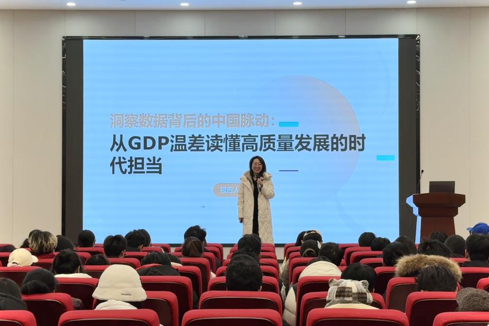 为深入学习贯彻习近平新时代中国特色社会主义思想,引导青年学生树立责任意识、增强使命担当,经济管理学院院长曲文俏于2025年12月4日在文法西楼A104报告厅为2024级全院学生开展“洞察数据背后的中国脉动:从GDP温差读懂高质量发展的时代担当”主题思政课。