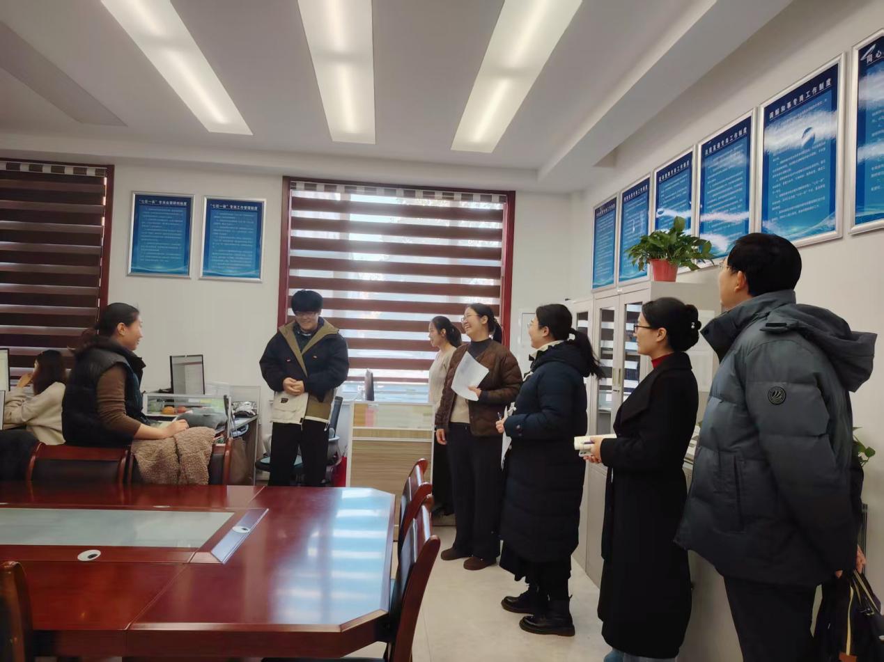 在各实习点,指导教师们首先深入学生工作现场,仔细参观了办公环境与工作场所,与实习学生展开一对一深入交谈,教师们详细询问了同学们的日常工作内容、基层适应情况及遇到的困难挑战,重点梳理了实习工作与课内专业知识的结合点,为后续将基层实践案例融入课堂教学、优化实训环节设计积累了宝贵素材。