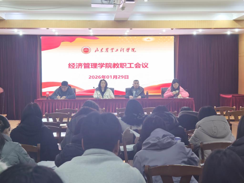 2026年1月29日,经济管理学院在济南校区多功能厅召开全体教职工会议。会议由学院党委书记马勇主持,学院全体教职工参加会议。