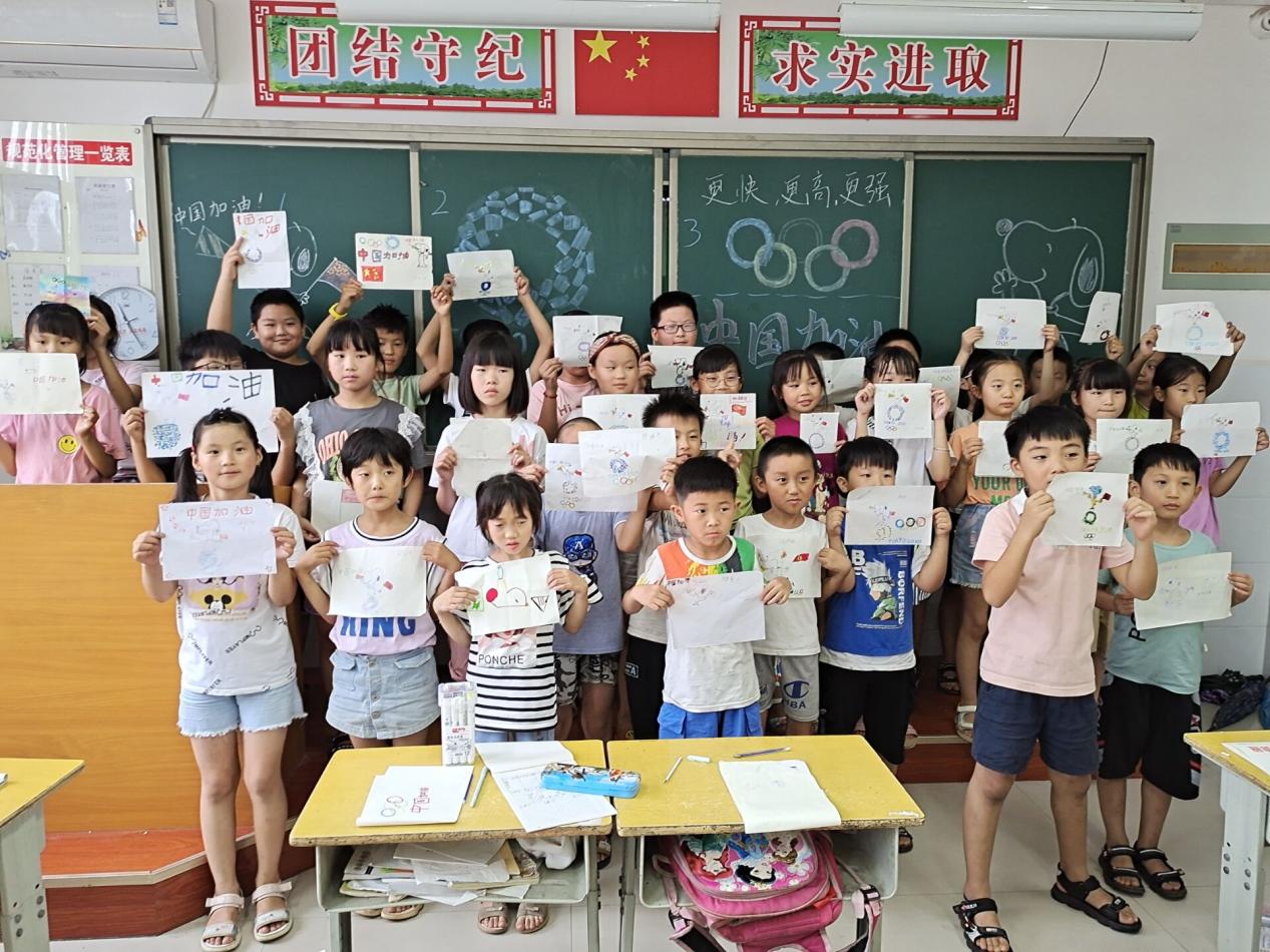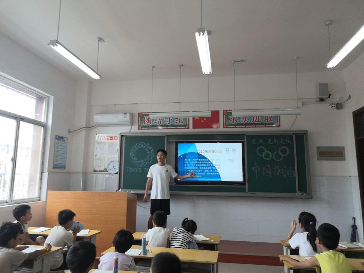 在今天的语文课中,同学们跟随志愿者在《长相思》中领略纳兰性德的铁汉柔情;在体育课中,同学们在长拳一路中体会中华传统武术的魅力;在美术课中,同学们在志愿者的带领下,结合我为奥运加油的主题,绘出一幅精采绝伦的图画,最后孩子们把自己的作品高高举起,大声喊出中国加油的口号,他们脸上洋溢着自豪的笑容,展示出中华儿女的骄傲,用他们独特的方式向正在东京奥运会上的中国健儿们表示最真诚的祝福