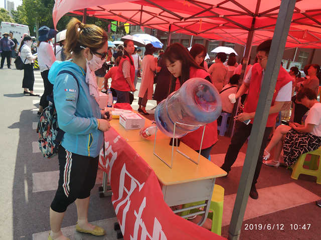 6月11日7:00,志愿者们来到2019年中考济南市历城五中考点严阵以待,8:00考生和家长们陆续来到考点外等候,志愿者们帮助交警疏导交通,为家长送上一瓶瓶纯净水和一把把扇子,为考生们送上衷心的祝福。看着考生们坚定的眼神,志愿者们抹去脸上的汗水露出了欣慰的笑容。