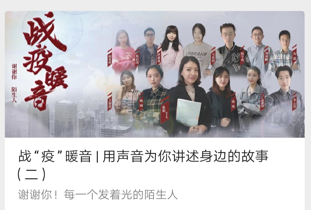 4月14—4月17日,学院利用微信公众号普及国家安全知识,宣传贯彻总体国家安全观,让疫情防控、生命安全、心理健康和国家安全知识入脑入心、见行见效,凝聚社会力量,共同筑起维护国家安全坚固屏障。通过学院学生社团微信公众号,开展多期的师生诵读活动——“战疫暖音”,宣传在抗疫一线用实际行动维护公共卫生安全、捍卫国家安全的先进典型及感人事迹,营造浓厚的国家安全宣传教育氛围。