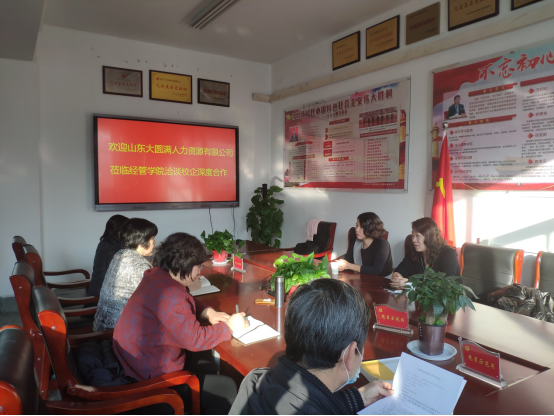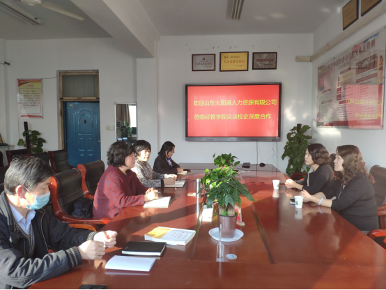 1月5日下午,经管学院邀请山东大圆满人力资源有限公司孙靓和于海琳总经理一行来院就毕业生实习就业事宜进行深度交流。经管学院党总支书记颜素杰、副书记兼院长李百秀和副院长曲文俏及部分教研室主任参加了座谈会,会议由颜素杰书记主持。