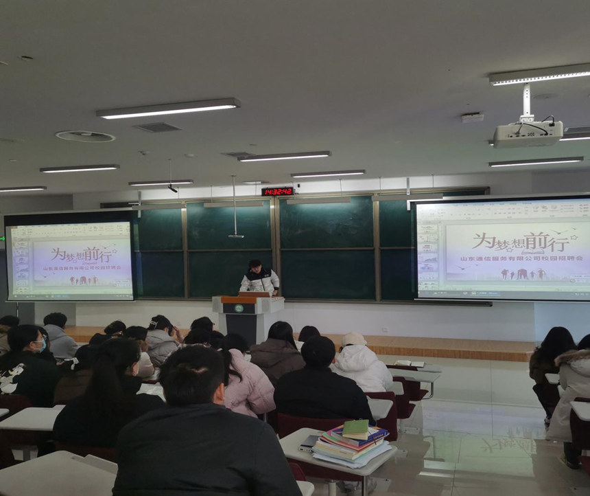 2023年12月25日下午经济管理学院在淄博校区淄公南楼B102教室举办中国通信服务山东公司招聘宣讲会,我院院长李百秀、物流教研室主任陈岱莲、辅导员曹奇以及2024届物流工程专业学生参加此次宣讲会。
