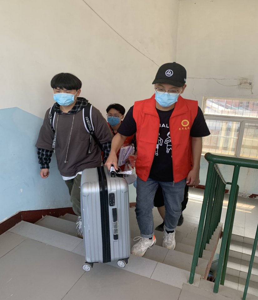 辅导员老师帮返校学生搬行李