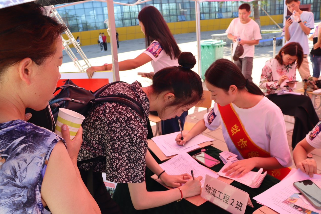 迎新现场,学生会学生志愿者协同辅导员,帮助新生完成学籍注册、购买生活用品、入住宿舍等工作。为了让新生尽快熟悉新环境、更快融入学校生活、志愿者们向新生们介绍了学校的建筑分布以及讲解有关宿舍注意事项。良好的工作素质和态度获得新生和家长的连连夸赞。