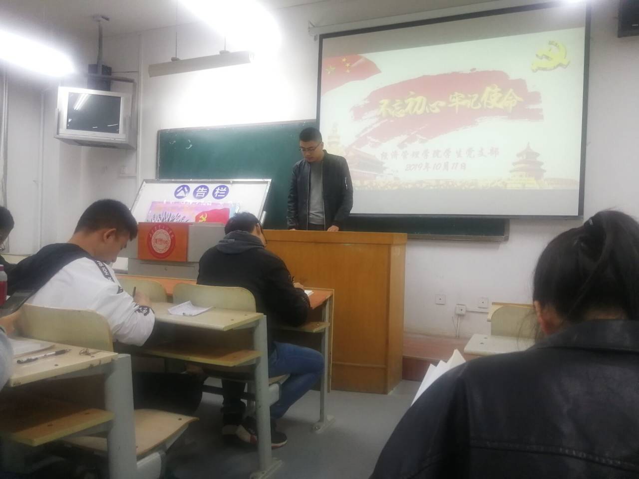 根据党支部“不忘初心、牢记使命”主题教育工作方案, 10月11日晚,经济管理学院学生党支部在北校区2号教学楼521教室组织了第四次“不忘初心、牢记使命”主题教育集体学习。组织全体党员将自己的对初心和使命的理解贴在了“初心树”上。本次活动由经济管理学院学生党支部书记谷晓川主持,学生党支部全体党员参加。