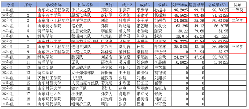 本次大赛由山东省科学技术协会、山东省教育厅、共青团山东省委员会、山东省发展和改革委员会、山东省工业和信息化厅、山东省人力资源和社会保障厅联合主办,山东大学、烟台大学和烟台市科学技术协会承办,山东大学管理学院和烟台工程职业技术学院协办。全省19支参赛团队参与竞赛,经过激烈的角逐,2022级物流工程专升本3班的郑康文、宋孙洋、2022级物流工程2班的李承泽、孙振祥获得了一等奖,2021级物流工程1班的刘童、李子洋、刘颜荣、2021级物流工程2班的叶睿洋获得二等奖,2021级物流工程1班的史兴哲、刘明哲、孙熙、叶镕林、冯佳莹、董雅佳、李智星、2021级物流工程2班的尹逊锟获得三等奖。