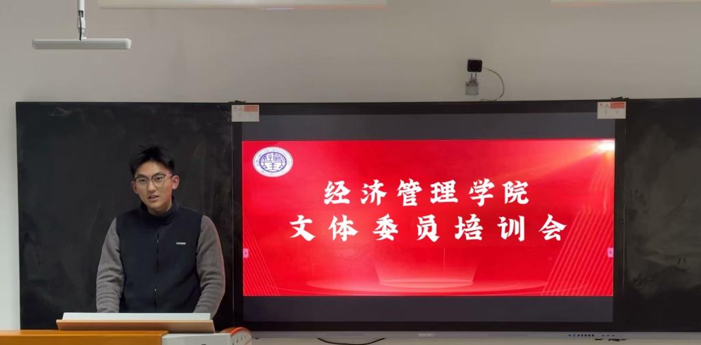 培训会上,陶靖元同学详细讲解了文体委员的职责,强调了文体委员在推动学院文体活动中的枢纽作用,并介绍了即将举行的“冬之火”万米接力赛和元旦晚会的相关安排,同时要求文体委员在信息传递的基础上,发挥自身的领头作用,积极引领同学们参与院级文体活动,通过彼此交流、相互学习,携手共创经济管理学院独特且丰富的文化氛围。