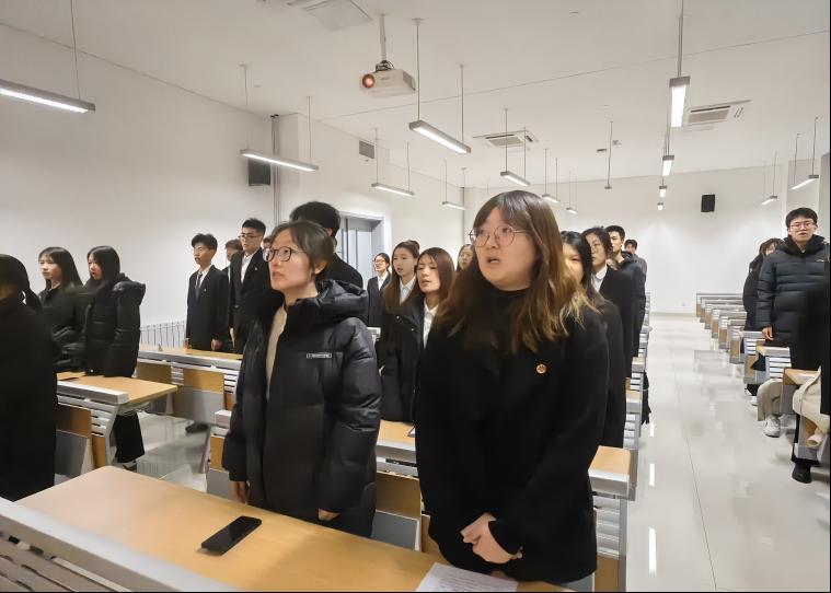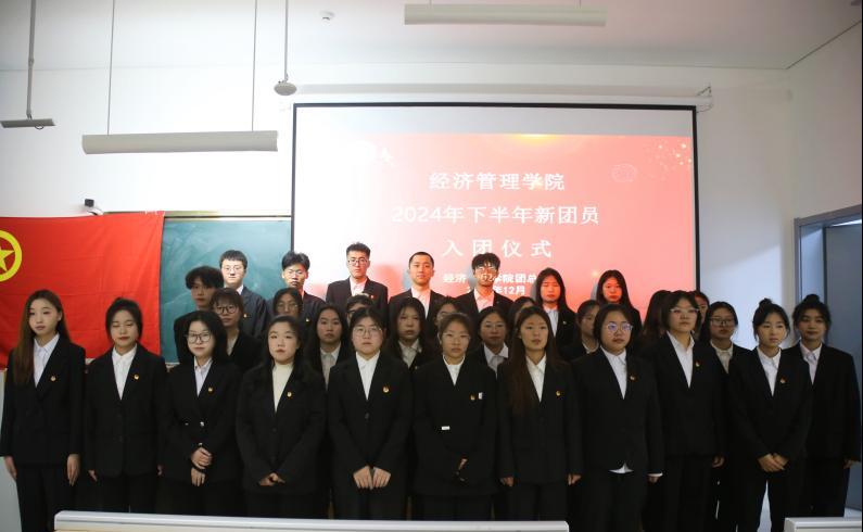 为进一步团结广大团员和青年,坚定理想信念,增强团员责任感和使命感,2024年12月17日,经济管理学院于文法西楼B105教室举行2024年下半年新发展团员入团仪式,我院思想政治辅导员李娜、侯沁菲以及2024年下半年全体新发展团员参与此次仪式。