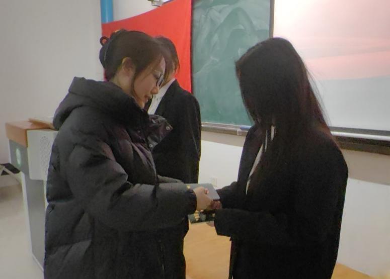 本次仪式在庄严的国歌声中拉开序幕,全体成员怀着崇高的敬意起立齐唱中华人民共和国国歌。随后,主持人宣读2024年下半年新发展团员名单,我院思想政治辅导员侯沁菲为新团员们颁发团员证、佩戴团徽。