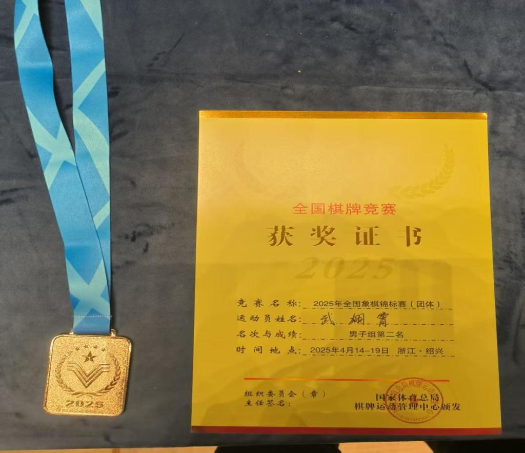 2025年4月19日,2025年全国象棋锦标赛(团体)在浙江绍兴落幕,我院学生武翃霄积极参赛,获全国象棋锦标赛(团体)男子组第二名。