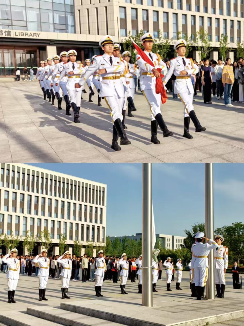 清晨,曙光刺破云层,国旗护卫队迈着铿锵步伐走向升旗台。肩扛国旗、目光如炬,护送五星红旗走向升旗台。红旗之下,山农工学子以挺拔之姿诠释着“青年兴则国家兴”的担当,以赤诚之心回应着“以青春之我,创建青春之国家”的召唤。