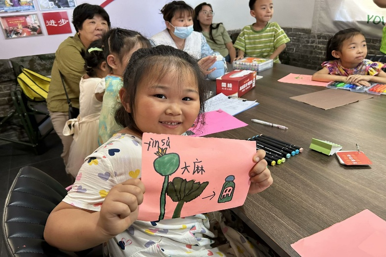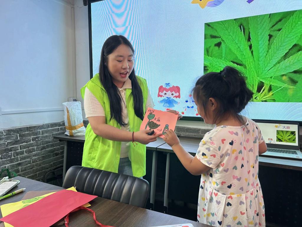在“认识毒品真面目”环节,志愿者通过多元形式带领孩子们深入了解毒品。首先开展“头脑风暴”,抛出“生活中可能存在哪些伪装的毒品?”“毒品会带来哪些可怕后果?”等问题,激发大家积极思考,孩子们热烈讨论,各抒己见。随后的“手绘毒品”环节中,孩子们拿起画笔,认真描绘罂粟、大麻等毒品原植物及常见毒品的形态,在一笔一画中,加深对毒品外观特征的认识,同时也直观感受到这些看似普通的植物背后隐藏的巨大危害。随后,志愿者通过一系列趣味提问,如“冰毒为什么被叫作‘冰’?”“罂粟有哪些危害?”,检验孩子们的学习成果,帮助大家巩固毒品知识。