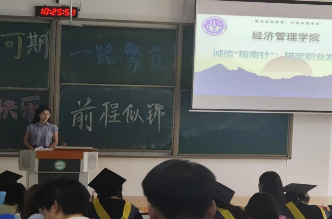 近日,我院毕业班辅导员给全体2025届毕业生开展以“诚信“指南针”:锚定职业发展路”为主题的班会。本次班会旨在引导毕业生树立正确的就业观念,提高诚信意识,为即将步入社会的毕业生们提供一次深入的交流与学习的机会。