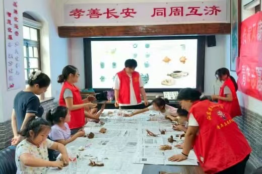 2025年7月16日,周村区长安社区沁雅书院迎来了一场别开生面的文化活动,“青春行·中国梦”暑期支教团深入社区为小朋友们带来了一场沉浸式的齐文化体验,通过独特的方式弘扬中华优秀传统文化,让社区儿童深刻了解淄博陶瓷的文化魅力。