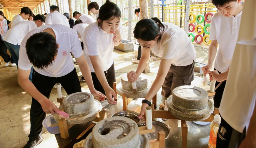 除蔬果采摘售卖活动外,儒声新创团队还精心设计了多项兼具趣味性与教育意义的实践项目。在石磨豆浆环节,学生通过耐心劳作,体会“恒” 的可贵,明白任何成就都离不开持续努力与时间沉淀;烧烤晚会期间,学生在协作生火、分享美食的过程中,深刻感受 “和” 与 “乐” 的精神,彼此情谊在烟火气息中不断升温。