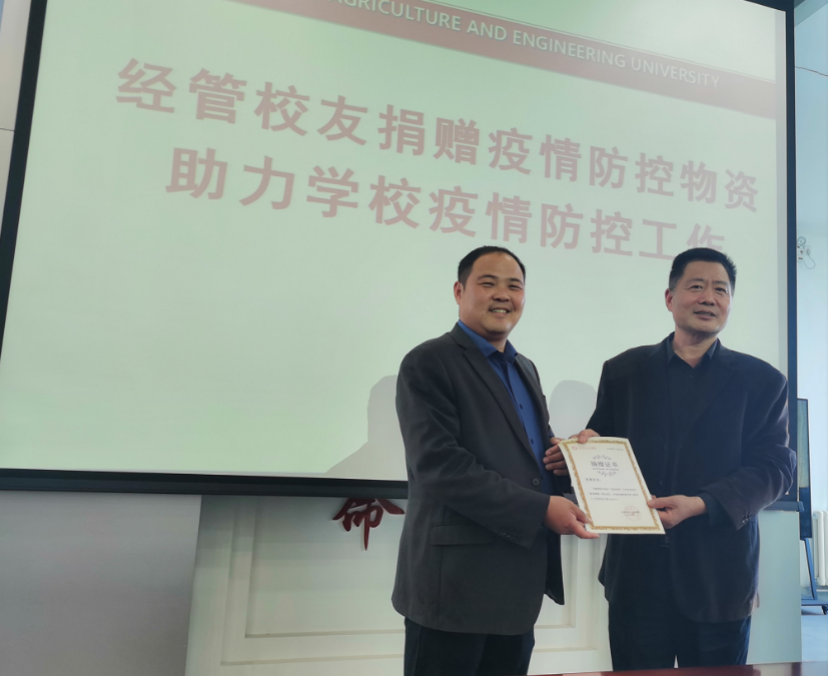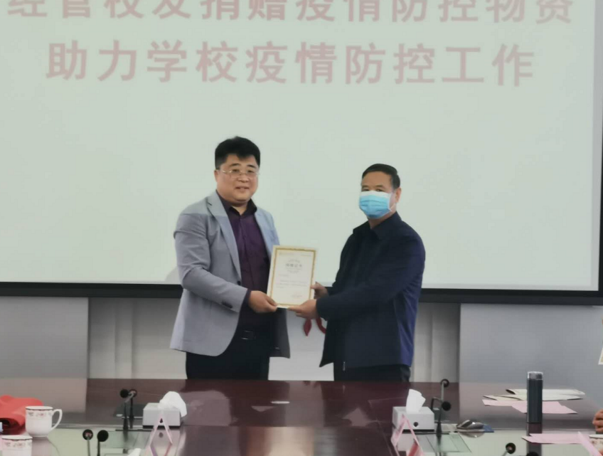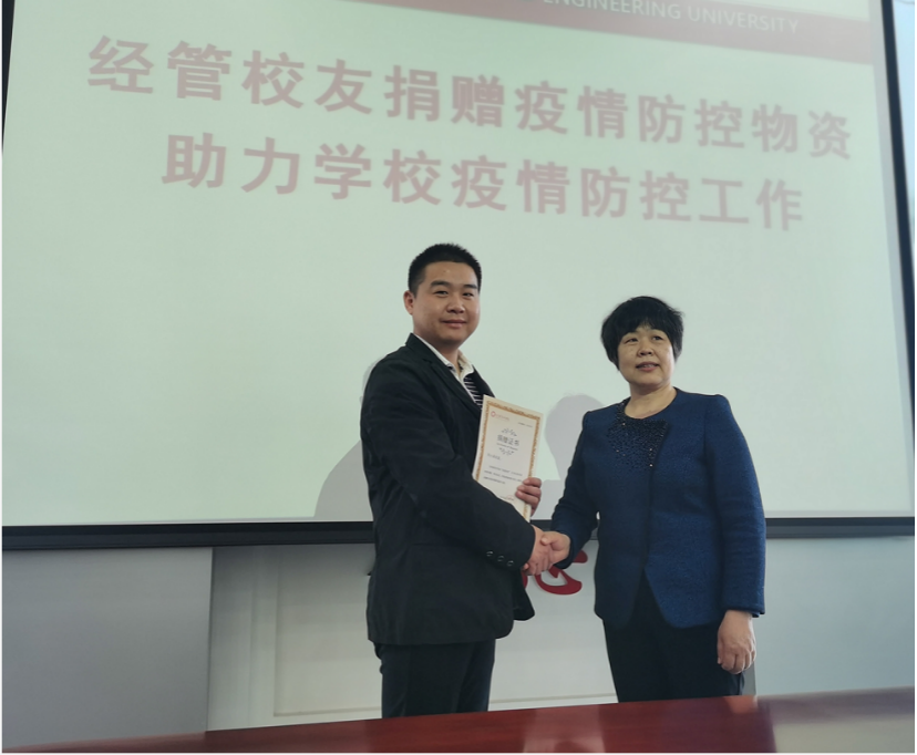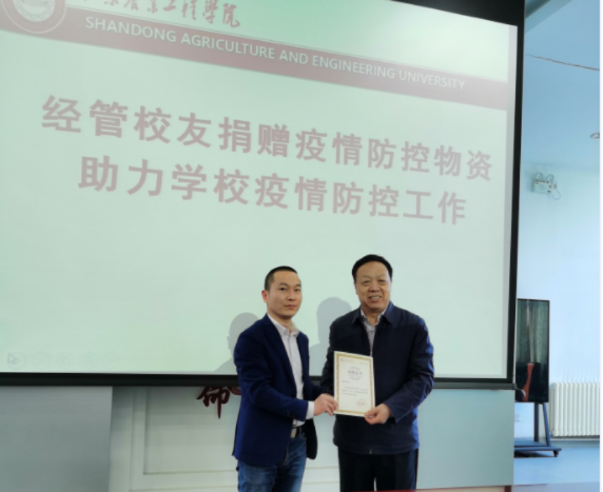 4月20日下午,经济管理学院04级经管、营销、投资专业的张勇、胡滨、秦鹏、丁睿、吕伟、于启文、屈媛媛、闫小兵、孙鑫等毕业校友情系母校,向母校捐赠一批疫情防控物资,助力学校疫情防控工作。校党委书记丁希滨,副书记、校长王西奎,党委委员、副校长张伟和校长办公室、后勤管理处、经济管理学院等有关部门负责人等出席捐献仪式。捐赠仪式由张伟副校长主持。