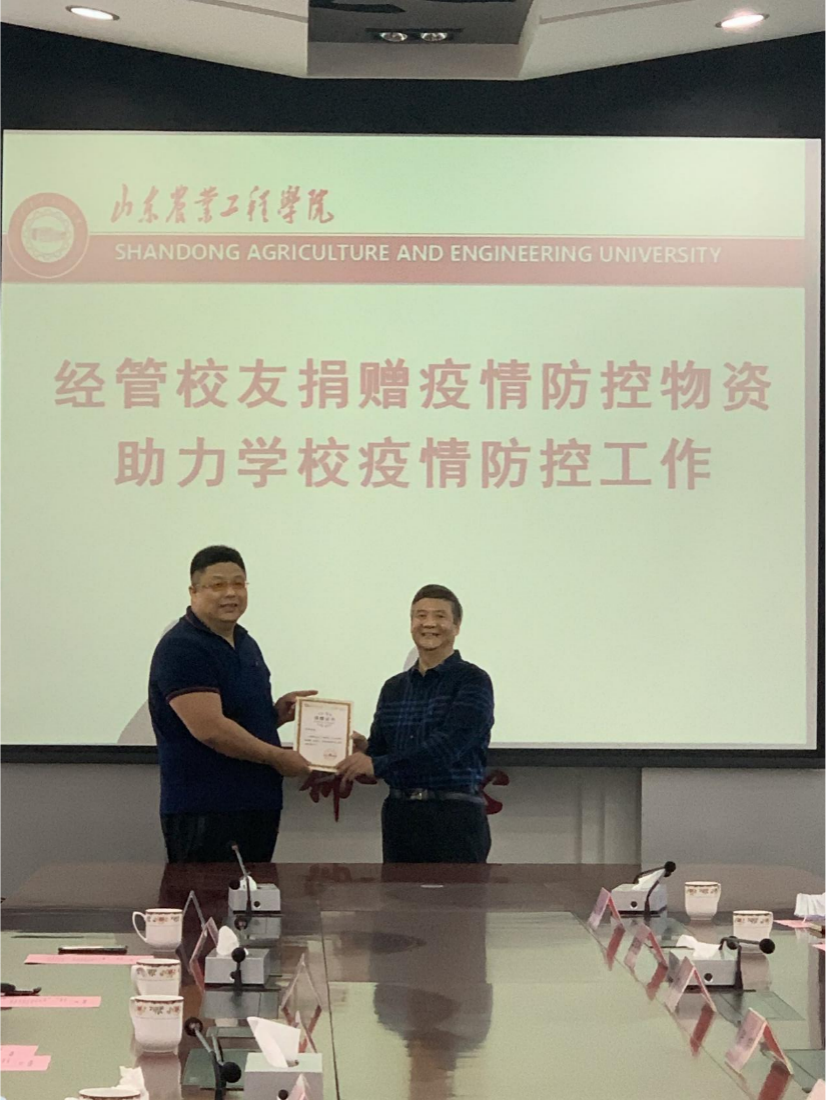 程琳校友热心公益事业,时刻关心母校的发展,2020年5月15日程琳、曹勇、齐岭、张克君、车珂和崔红润等校友在学校即将复学之际,代表经管学院校友向母校捐赠一次性医用口罩30000只,用于新冠肺炎疫情防控,助力师生返校复学。他们的善举表达了校友们对母校的拳拳之情,体现了校友企业强烈的社会责任感和使命感。