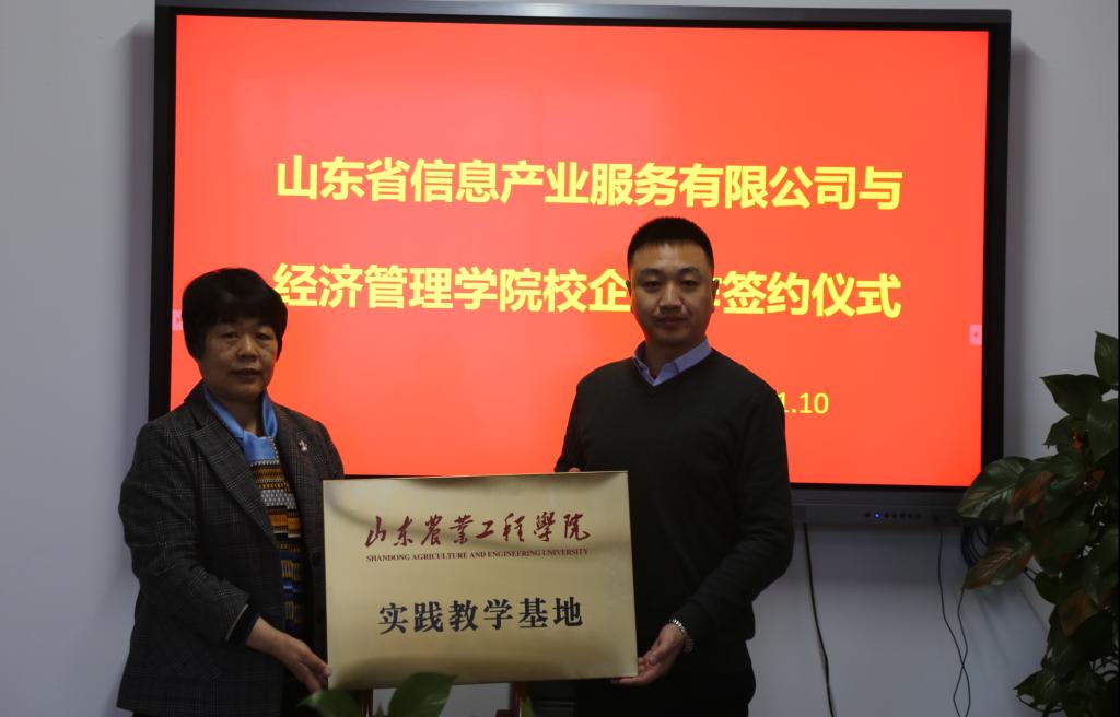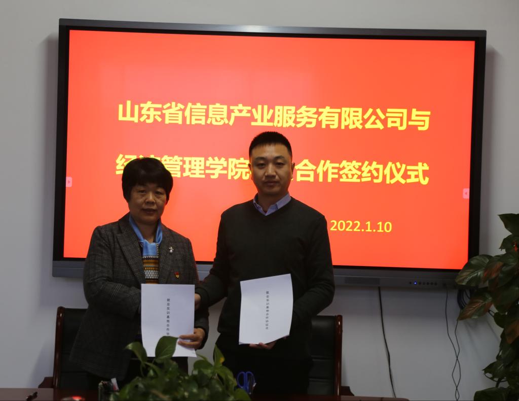 2022年1月10日下午,在济南校区1号教学楼311党建活动室经济管理学院与山东省信息产业服务有限公司签订了产学研合作协议及就业实践基地合作协议。企业方的王韬、廉晋辉、于志浩三位经理,经管学院院长李百秀、党总支书记颜素杰、物流教研室主任陈岱莲及部分教师代表参加了签约仪式。