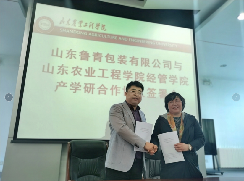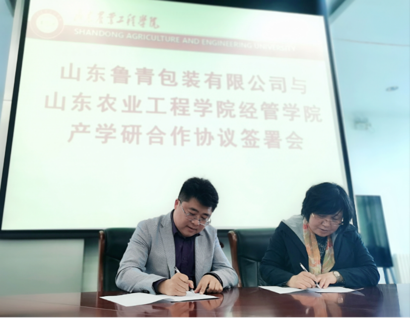 4月20日下午,经济管理学院与山东鲁青包装有限公司成功在济南校区办公室四楼会议室举行了产学研合作协议签署会。经济管理学院党总支书记颜素杰、院长李百秀一行5人同山东鲁青包装有限公司总经理于启文出席了本次签约仪式。