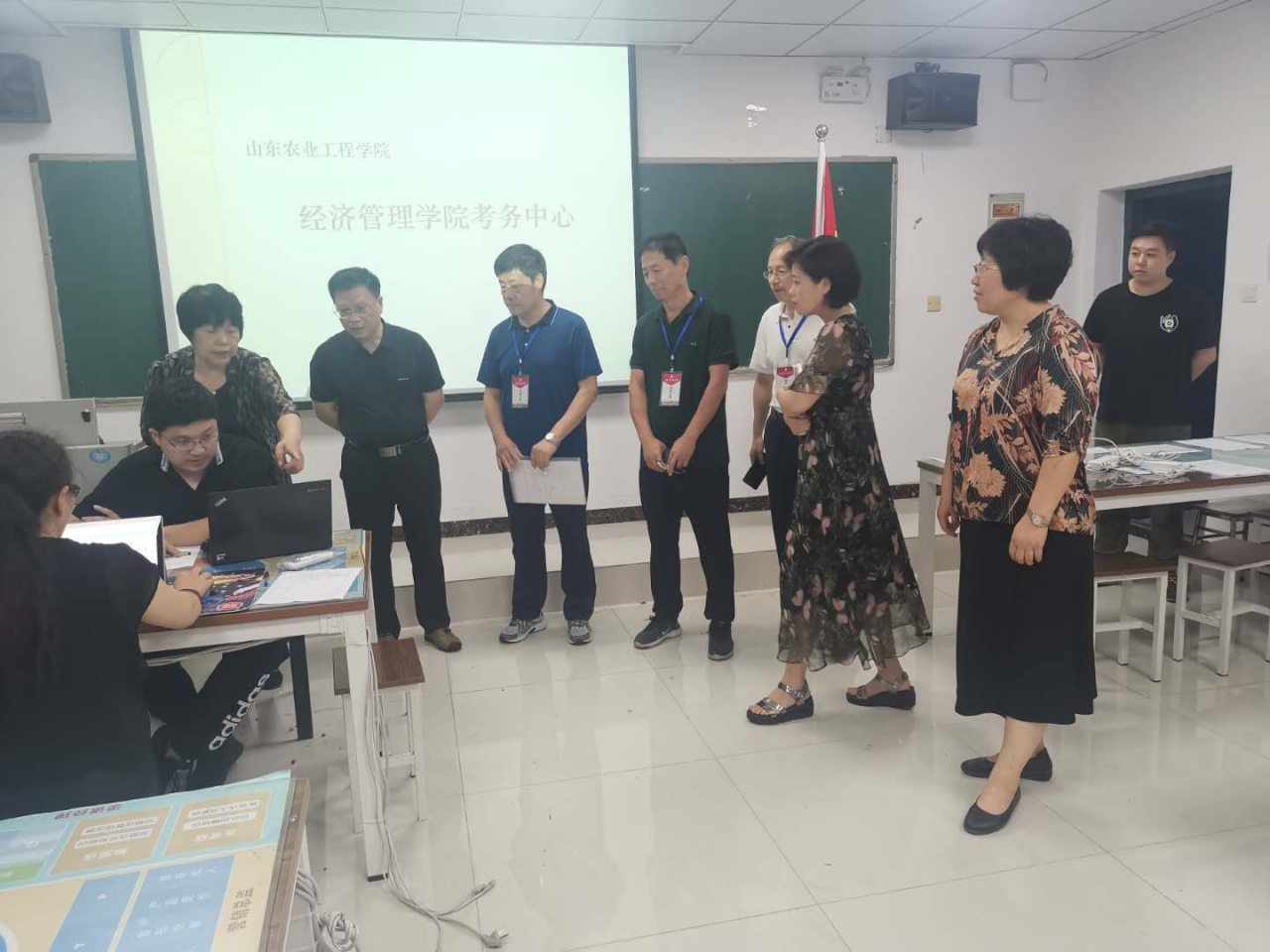 7月9日上午,2019-2020学年第二学期期末考试正式开考第三天,副校长杨振宁带领教务处、质评中心和校督导组专家亲临经管学院考务中心巡考 ,经管学院党总支书记颜素杰、院长李百秀、副院长曲文俏和教学秘书范靖全程陪同。