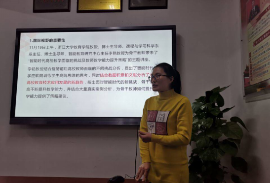 中青年骨干教师教学能力提升强化培训班由必赢教师发展中心主办,全国干部教育培训浙江大学基地承办,我院选派了刘春英、陈岱莲、张琳、贾辉老师参加培训。她们一致表示此次培训班对于个人素养和业务能力都起到了良好的提升作用。会上4位老师分别从不同的角度采用多种方式向全院教师交流了经验与知识,并分享了心得。