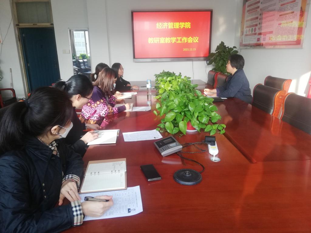 2021年12月15日下午,经济管理学院在学院党建活动室召开期末教研工作会议,院长李百秀主持会议,全体教研室主任、副主任参会。