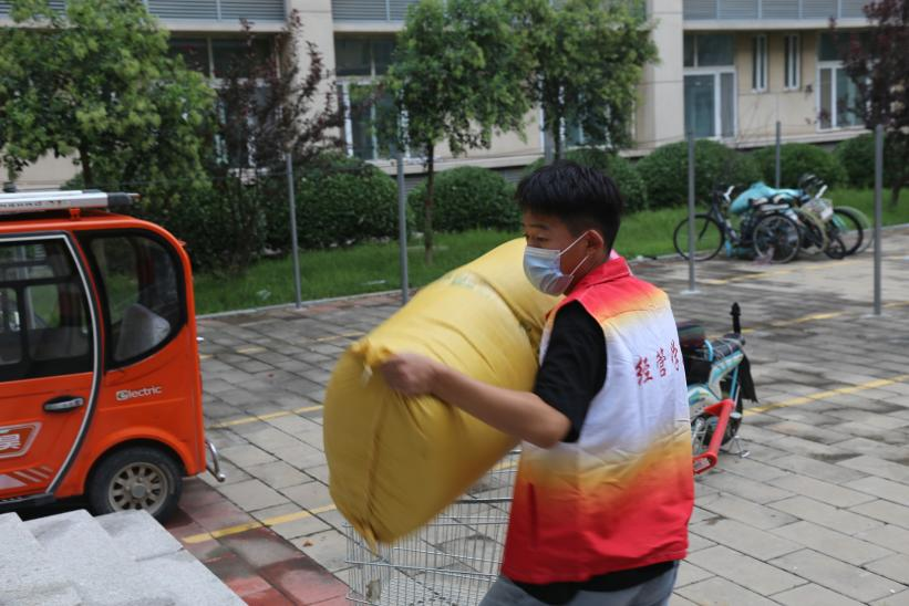 志愿者不惧风雨,任劳任怨,认真负责帮助新生搬运行李。良好的工作素养和态度使我院成为迎新工作中一道靓丽风景线。