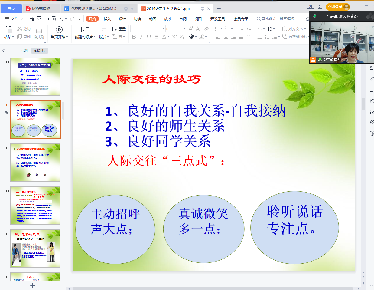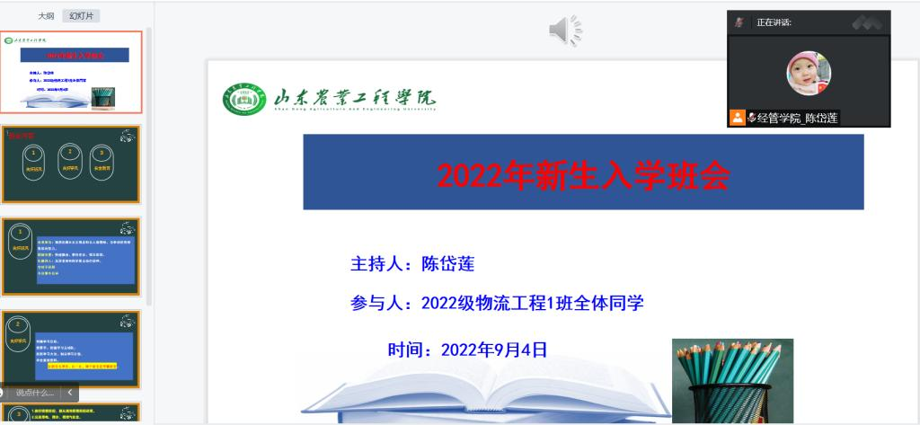 9月4日,经济管理学院在“云端”召开了2022级新生入学教育动员会。学院党总支书记颜素杰、党总支副书记院长李百秀、副书记杜锋、副院长曲文俏、全体新生辅导员和班主任参会,旨在帮助2022级新生尽快转化角色、适应新环境、融入新生活、增强归属感,引导学生明确奋斗目标,坚定理想信念,增强家国情怀,激发使命担当。