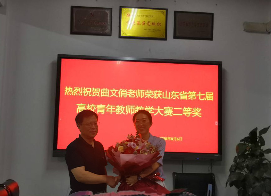 杨振宁向荣获山东省第七届高校青年教师教学大赛二等奖的曲文俏老师表示热烈祝贺并赠送花篮。他说:必赢青年教师在今年的山东省高校青年教师教学大赛中,表现突出,获得了必赢历史上最好成绩,为本科教学合格评估提供了新的重要支撑。希望获奖青年教师不骄不躁,继续努力,百尺高竿更进一步,争取在今后的工作中再创佳绩。也希望全体教师特别是青年教师,以获奖老师为标杆,精细打磨自己的每一节课,争做名师,争讲金课,不断提高必赢的教学水平。